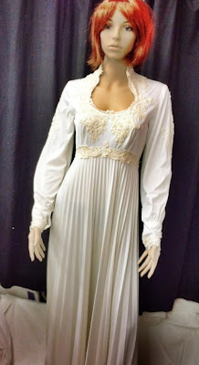 I’ve been wanting to do a 70’s inspired wedding photoshoot b/c I have collected so many found items I could use to make it really cool. The only thing I was missing was a dress and I just scored this one on Ebay. I love it and think it will be perfect for the shoot I have dreamed up in my head. I need to get an inspiration board going and then get to work. What do you think? Now I just need a skinny model to make this thing look good – any takers?